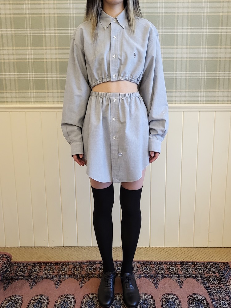 2. 스커트: 허리단면 27~44 / 엉덩이 단면 52 / 총장 34 (가장 짧은 곳) ~ 44 (가장 긴 곳) (cm)