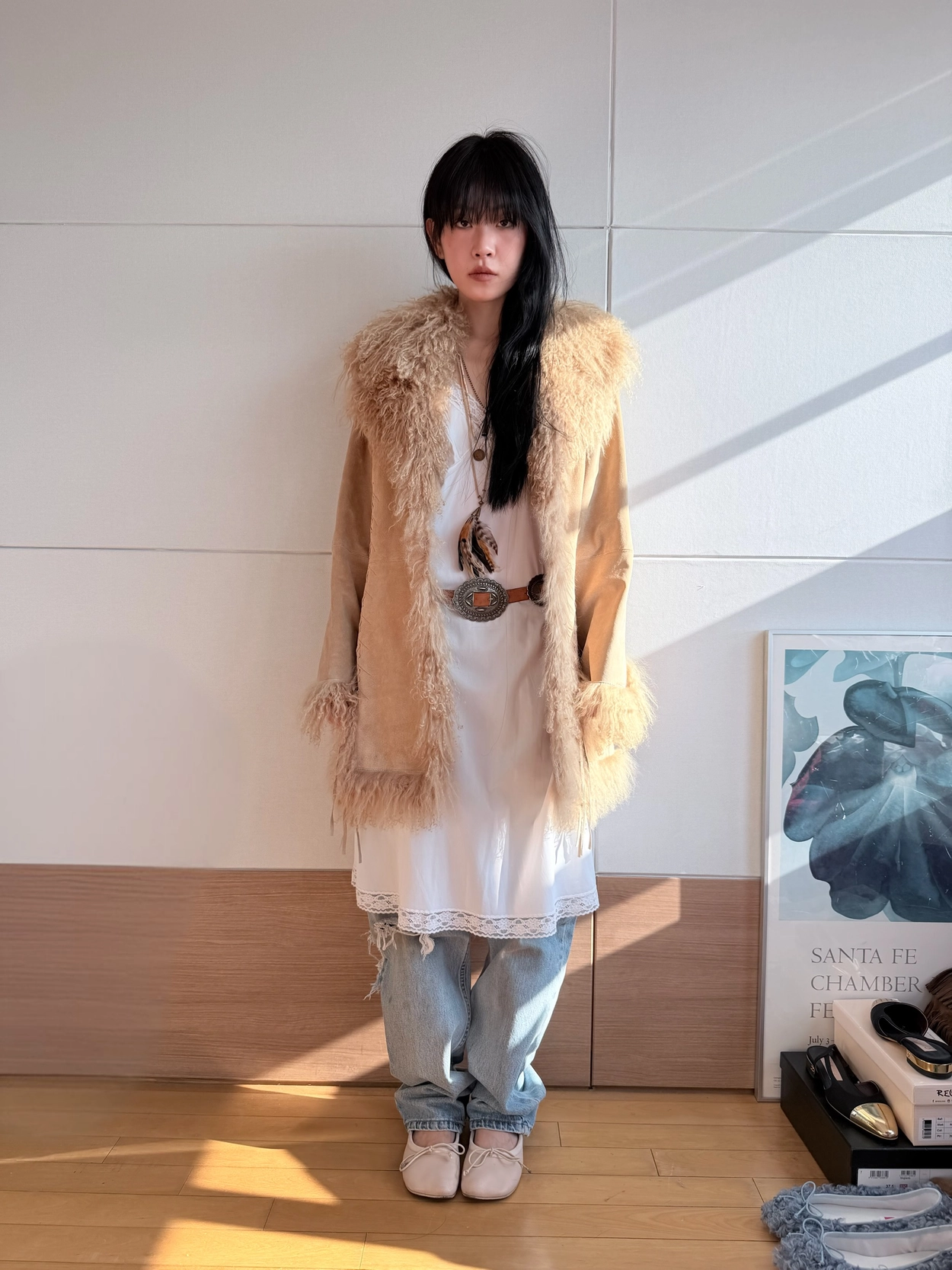 Vintage Mongolian Lamb Fur Trimming Coat